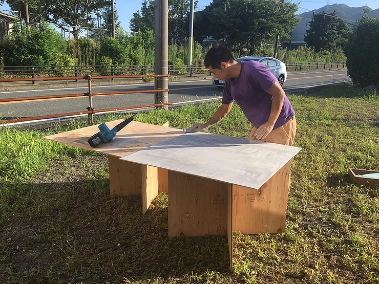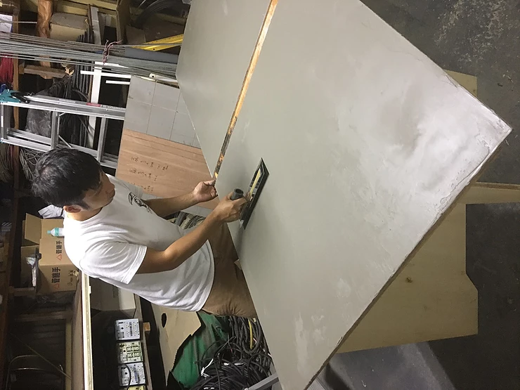 今回のキー素材となるモルパネの制作作業、志賀ちゃんがファクトリーで頑張ってくれています!↓着々と出来上がって来ています!