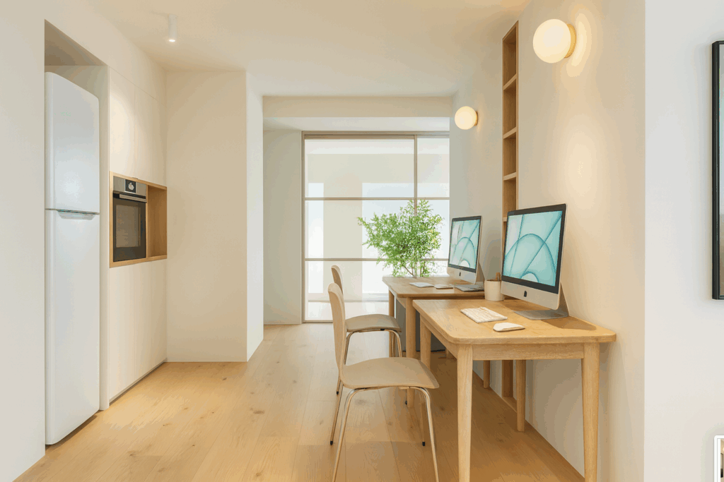 この「抜け」に光と風が通り抜けるのでご自宅でお仕事をされるお二人にとってデスクに座っている時の開放感は居心地の良いものになると思います。