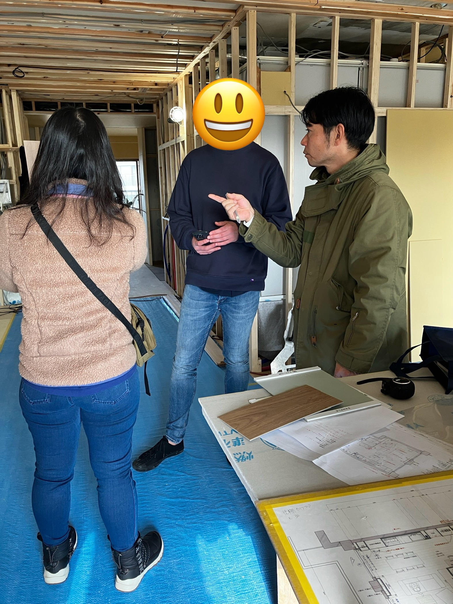 施主ご夫婦も終始楽しそうで、今まで図面だったものがこうして現実に立ち上がっていく瞬間を楽しまれてるなっと感じました。こうゆう時間を一緒に共有できるのっていいなっていつも思います。